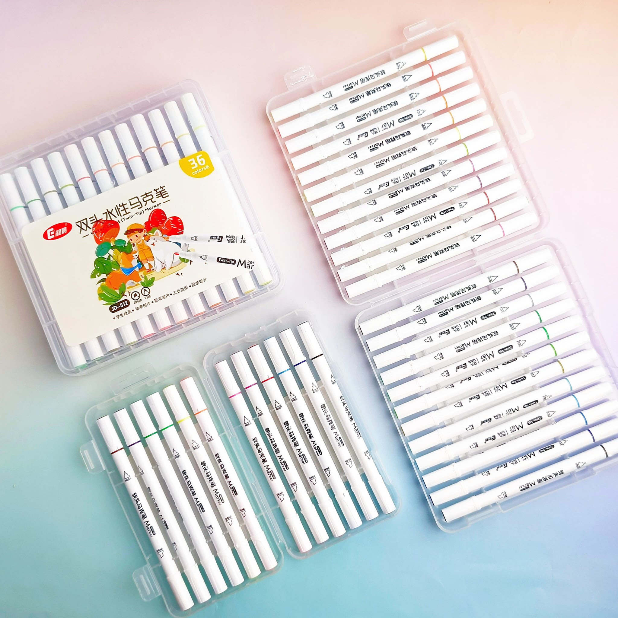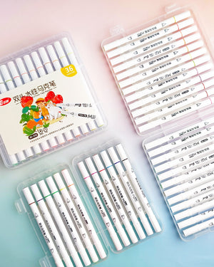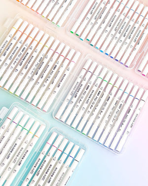Twin Tip (2in1) Markers combine precision and versatility with dual tips—fine for detailed lines and broad for filling larger areas. Available in sets of 12, 24, or 36 vibrant colors, these markers deliver smooth, consistent ink flow ideal for professional artists, designers