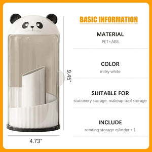 The Rotary Panda is a multifunctional organizer for fashion accessories and stationery. With its rotating design, you can easily access and store your items, keeping them organized and within reach. Perfect for any fashionista or office worker looking to declutter and save time.