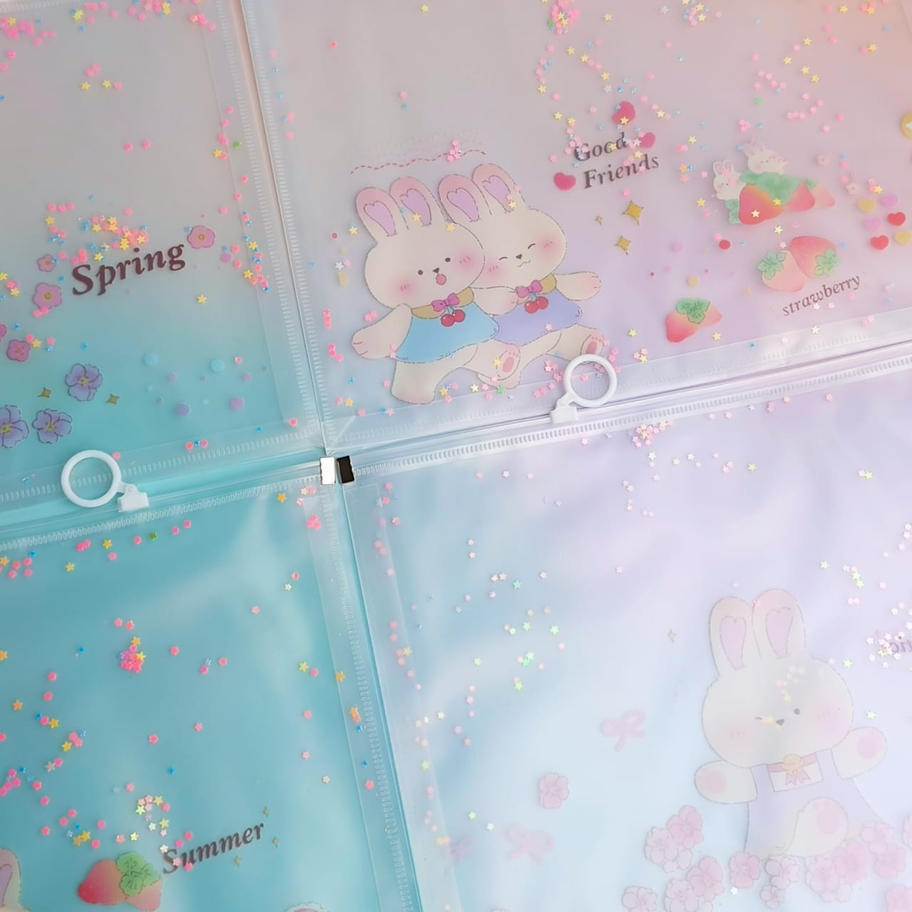 Cute Bunny Spring Flowers - Document Folder Large Pouch