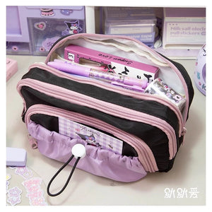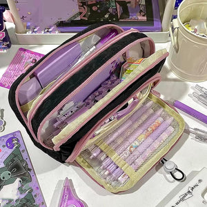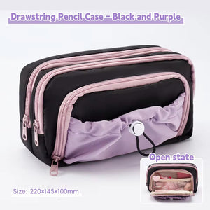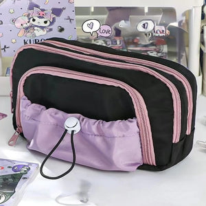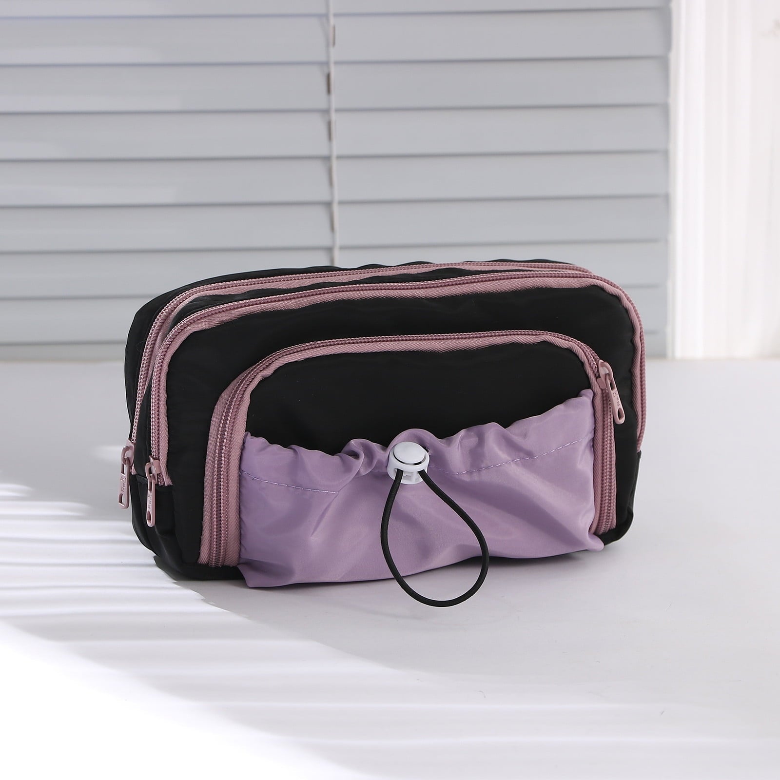 This pouch features three separate zip compartments, offering ample space to organize your essentials efficiently. Its large capacity design makes it ideal for storing cosmetics, stationery, or travel accessories, keeping items neatly separated and easily accessible. Crafted for durability and convenience, this pouch combines functionality with a stylish, subtle color suitable for everyday use.