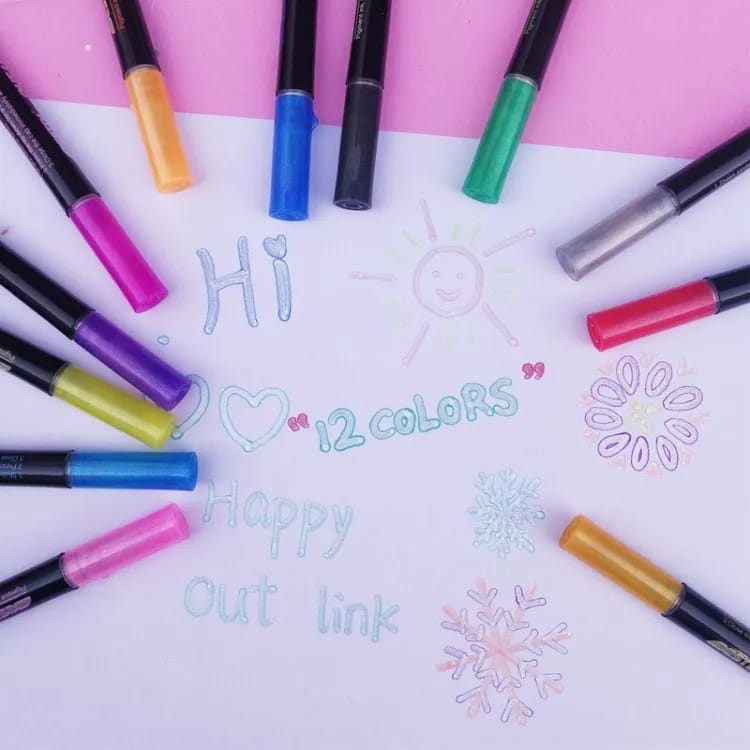 ◆ Diversified Vivid Colors: There are 12 colors of these self-outline metallic markers for you to choose from. Each pen is equipped with two different colors for you to mark. You can depict the letters in different colors with these dual color pens, thus adding a lot of fun to writing and drawing.