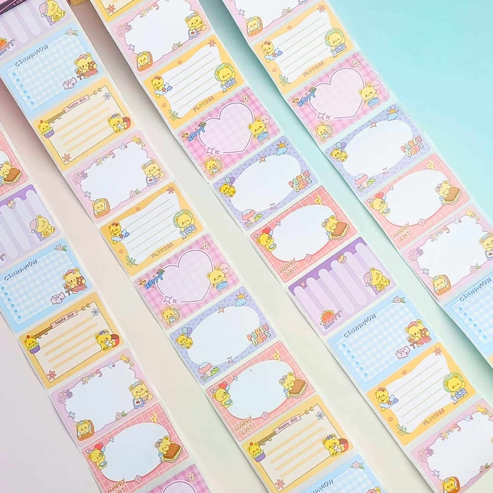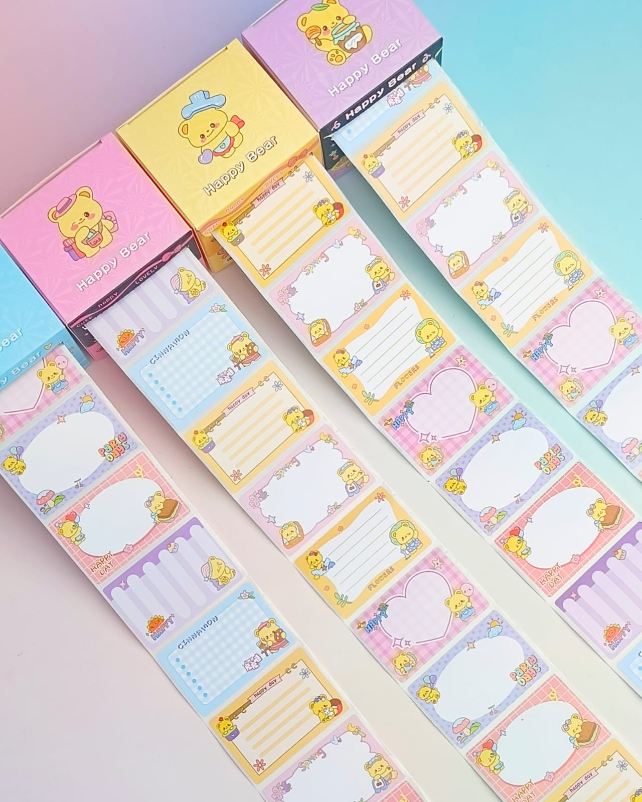 These Happy Bear Post It Notes come in a convenient sticker roll box. Perfect for organizing and labeling, each roll contains a generous amount of high-quality sticky notes. The adorable Happy Bear design adds a touch of personality to your note-taking.