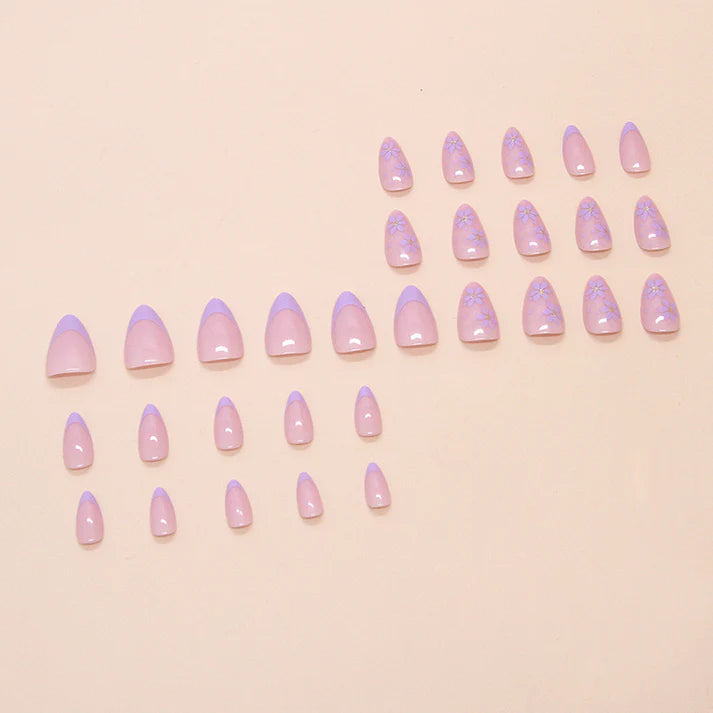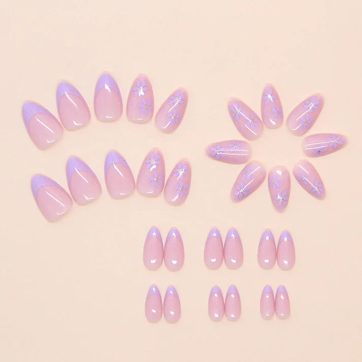Flowers & Purple Pastel - Press On Nail Set Of 24 + Free Nail Application Kit