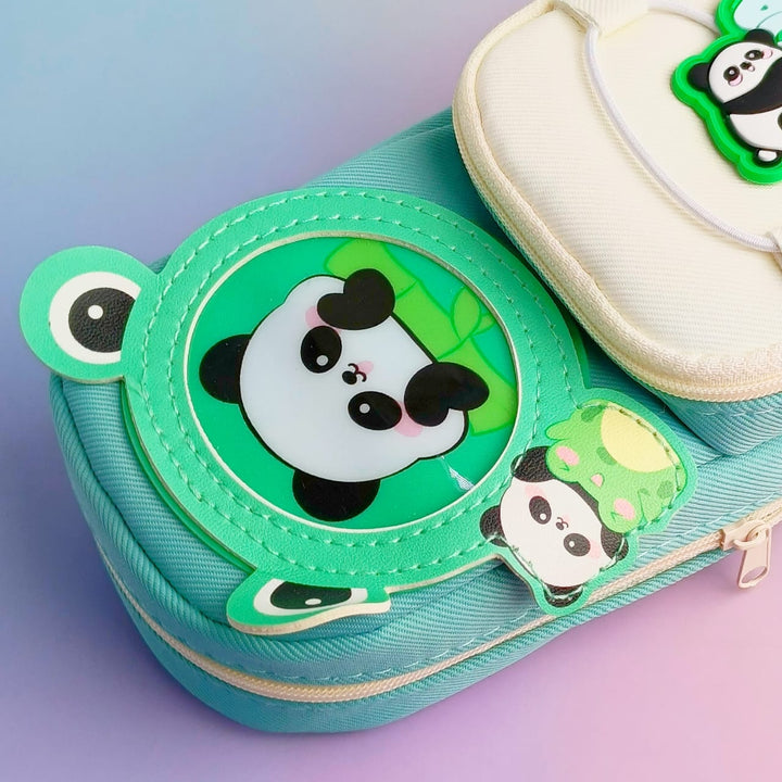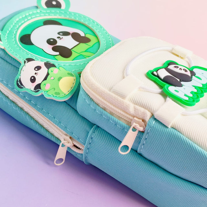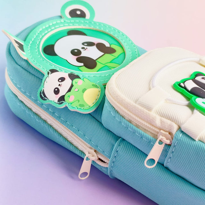Cute Panda Turquoise Green 2 Zipper - Large Pouch