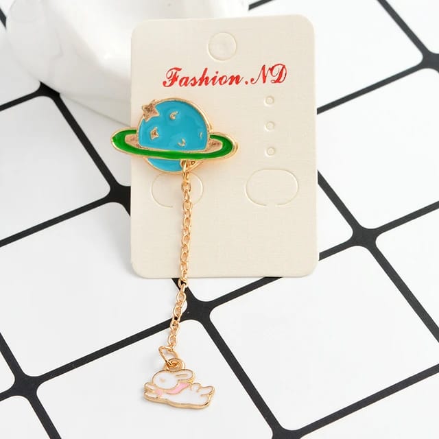 Dangling Planet & Bunny - Enamel Pin