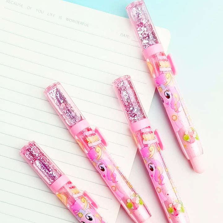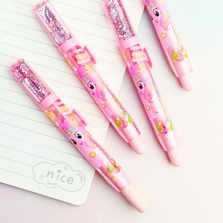 Elevate your erasing experience with this enchanting Glitter Water Pink Unicorn Press Eraser. Designed with a whimsical unicorn theme, this eraser combines functionality with delightful aesthetics, making it perfect for students and creative professionals alike. The glitter-infused water design creates a mesmerizing visual effect while maintaining reliable erasing performance. Its press mechanism