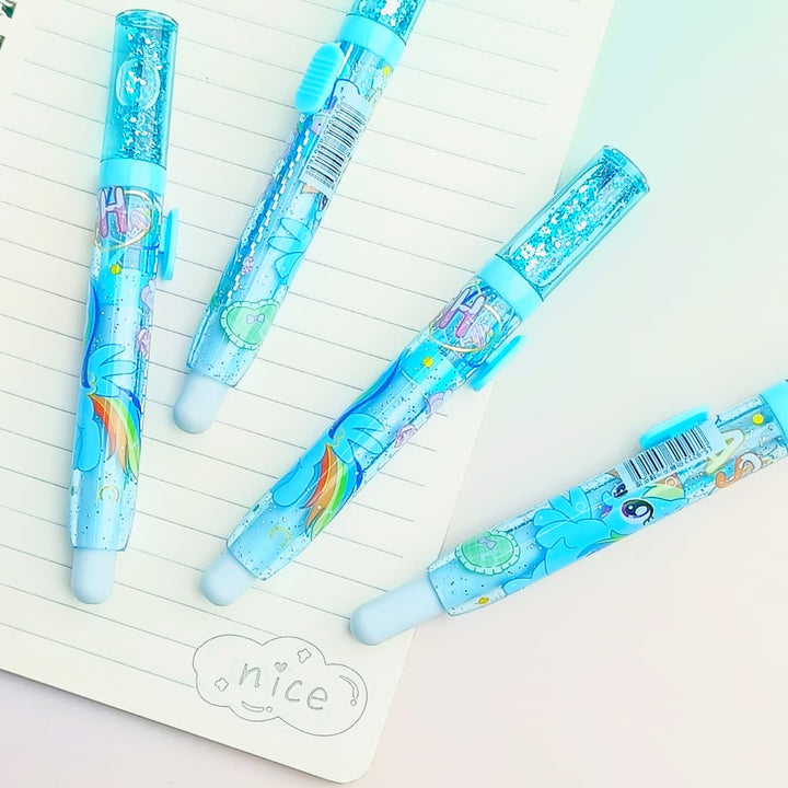 Introducing the Glitter Water Blue Unicorn Press Eraser—a whimsical writing essential that combines functionality with enchanting design. This premium eraser features a mesmerizing blue glitter finish encased in a charming unicorn shape, making it an ideal choice for students and stationery enthusiasts who appreciate quality and style. The press-activated mechanism ensures