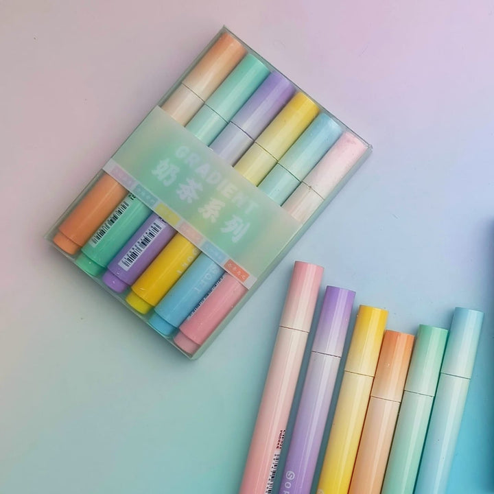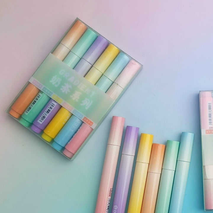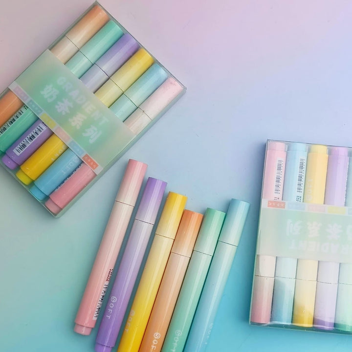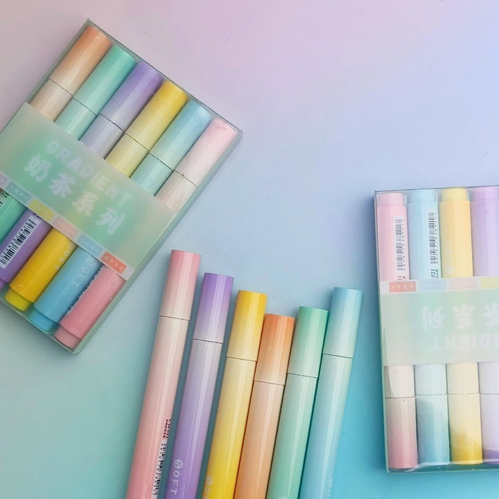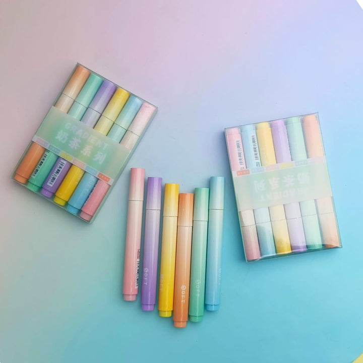 Introducing the Gradient Highlighter Set of 6. With a unique gradient design, these highlighters effortlessly transition from light to dark for precision highlighting. Made with top-quality materials, these highlighters offer smooth, vibrant lines. Enhance your note-taking and organization with this set of 6 highlighters. Increase productivity by 50%.
