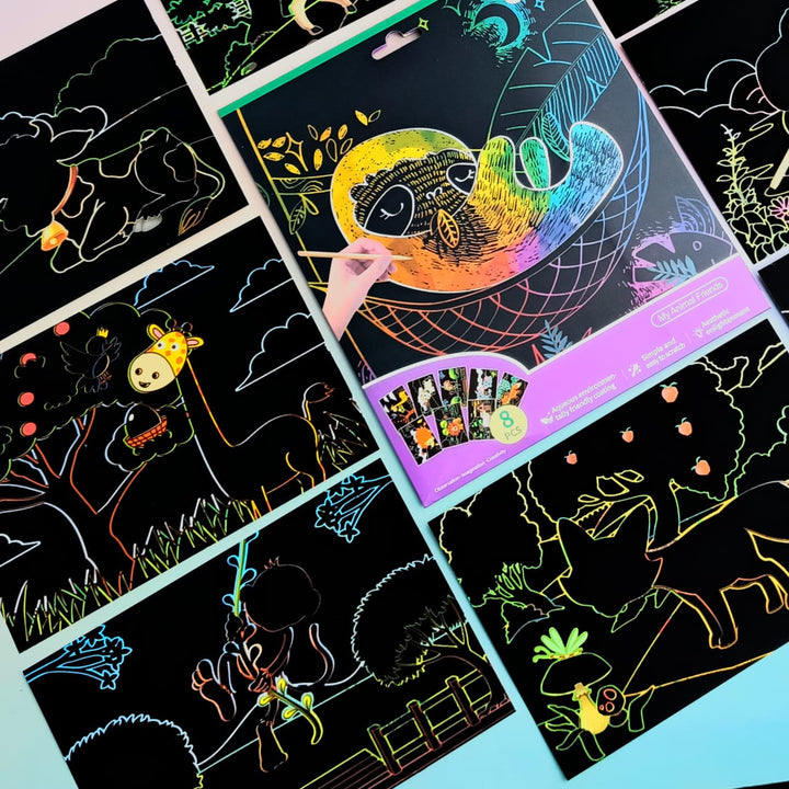 Discover the magic of scratch card art with this set. Unleash your creativity as you scratch away at the black surface to reveal beautiful and vibrant designs. Perfect for all ages, this set includes everything you need to create stunning art pieces.