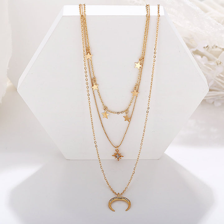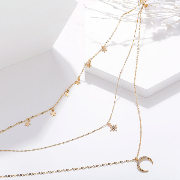 Layered Starry Moon & Star - Necklace