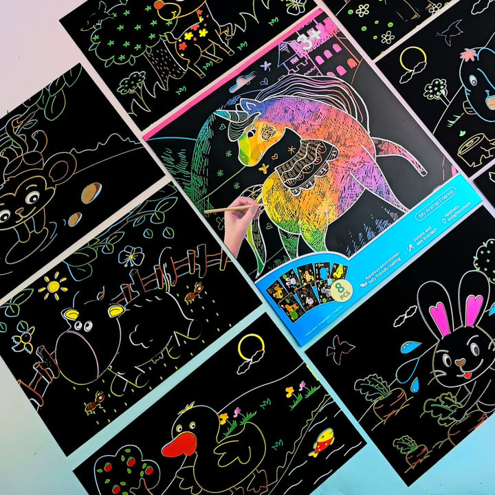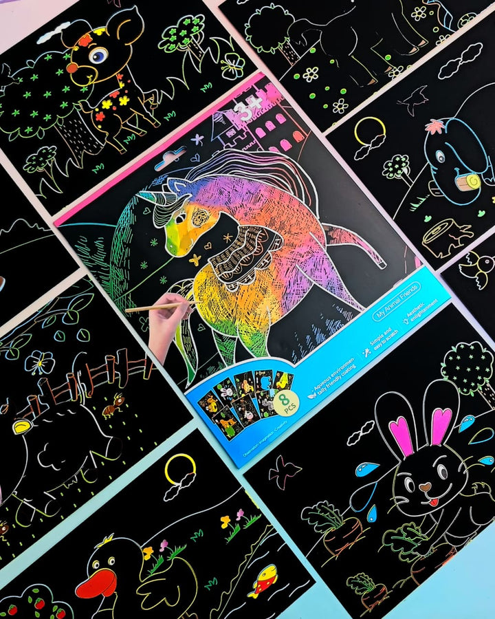Discover the magic of scratch card art with this set. Unleash your creativity as you scratch away at the black surface to reveal beautiful and vibrant designs. Perfect for all ages, this set includes everything you need to create stunning art pieces.