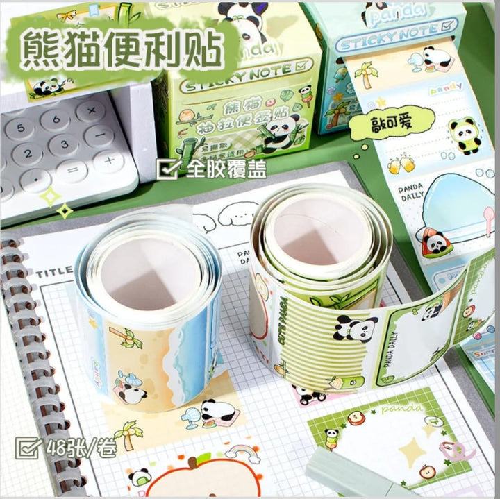 Organize your thoughts with these charming panda-themed post-it notes in convenient sticker roll format. Perfect for students, professionals, and creative minds, this box contains multiple rolls of adhesive notes ideal for marking pages, jotting reminders, and color-coding projects. The playful panda design adds personality to your workspace while maintaining functionality. Compact and portable, these sticker rolls fit easily into bags or desk drawers. An excellent choice for anyone seeking practical organization tools with a touch of whimsy.