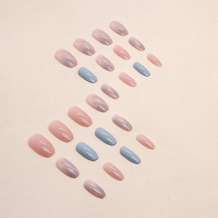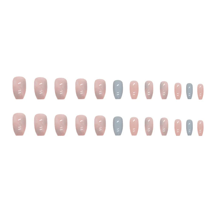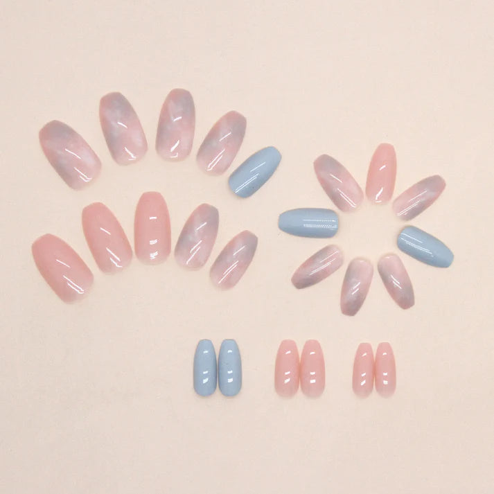 Pastel Pink & Blue - Press On Nail Set Of 24 + Free Nail Application Kit