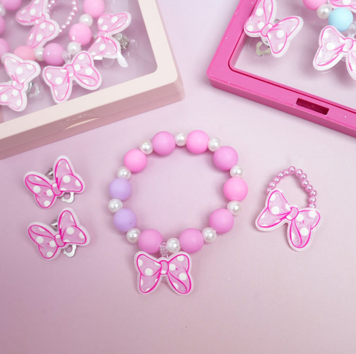 Pink Bow Beaded Pearls - Box Jewelry Set