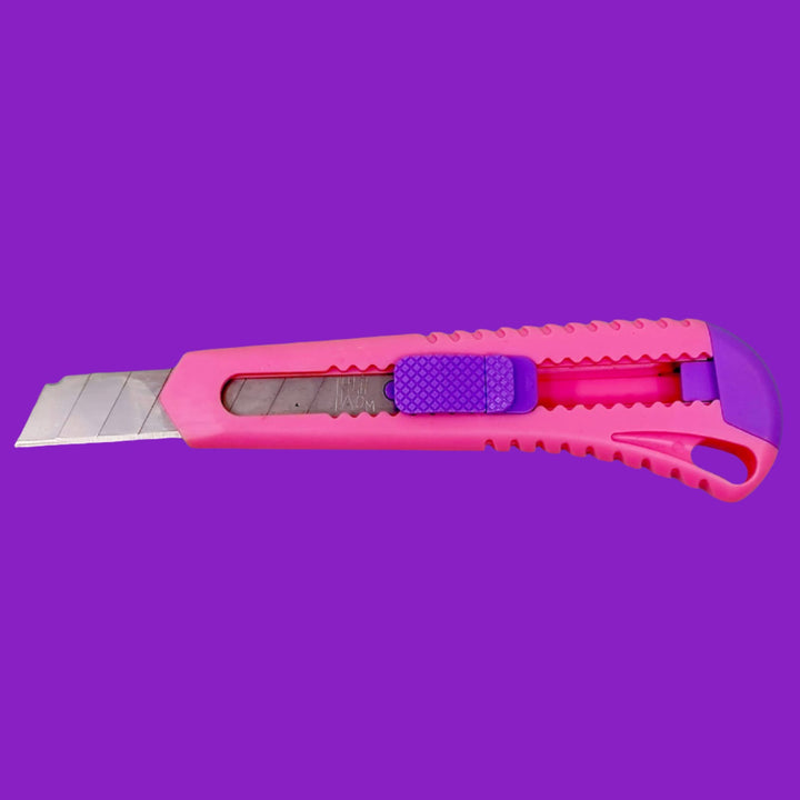 Efficiently cut through a variety of materials with the Pink & Purple - Utility Cutter. The vibrant pink and purple design adds a touch of style to this functional tool. With its sharp blade and comfortable grip, this cutter offers precise and effortless cutting, making it a must-have for any task.