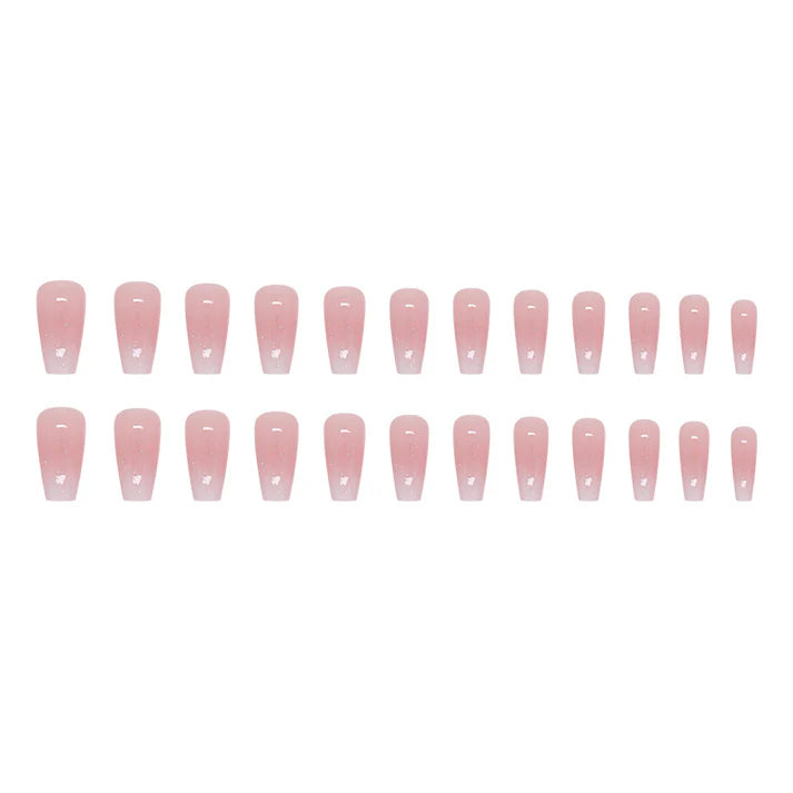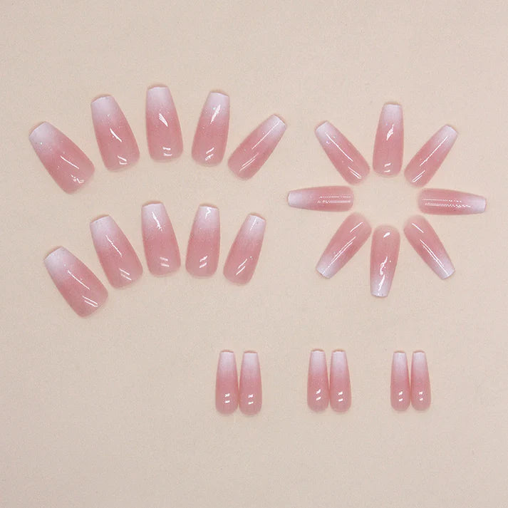 Stunning 24-piece press-on nail set . Each nail features a high-shine finish that catches the light beautifully, delivering salon-quality results in seconds. The extended length offers a sophisticated, elongated silhouette perfect for any occasion. With multiple sizes included, achieving a flawless custom fit is effortless. Simply select your size, apply, and enjoy chip-free, long