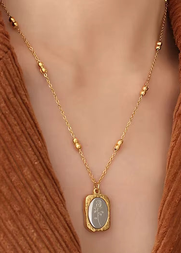 Premium Stainless Steel Foiled Rose Flower - Necklace
