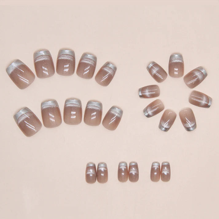Stunning 24-piece press-on nail set . Each nail features a high-shine finish that catches the light beautifully, delivering salon-quality results in seconds. The extended length offers a sophisticated, elongated silhouette perfect for any occasion. With multiple sizes included, achieving a flawless custom fit is effortless. Simply select your size, apply, and enjoy chip-free, long
