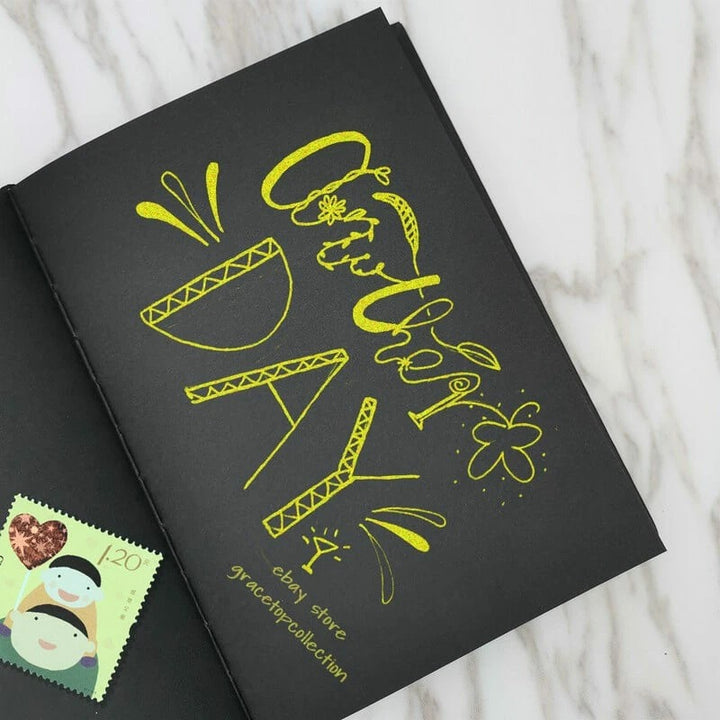 This Notebook/journal features elegant black pages with a foiled design, adding a touch of sophistication to your writing. The smooth finish allows for effortless writing and minimal smudging. Perfect for capturing your thoughts and ideas in style.