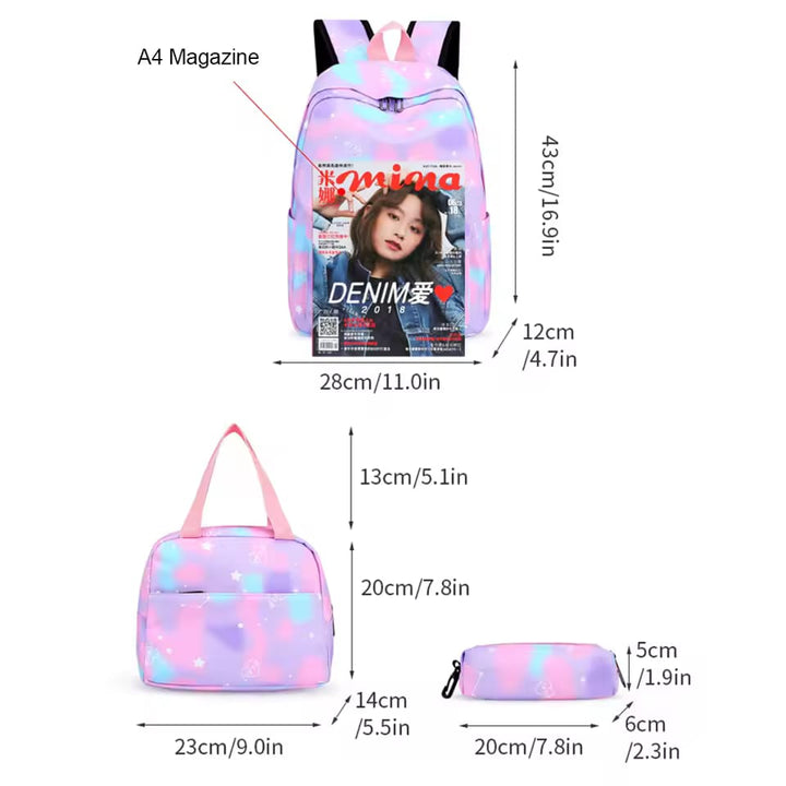 Embrace celestial charm with this enchanting three-piece backpack set, each adorned with zodiac signs, stars, and romantic love motifs in captivating pink hues. Perfect for astrology enthusiasts and romantics alike, this collection combines functionality with cosmic elegance. Whether you're organizing school supplies, travel essentials, or everyday carry, these versatile backpacks offer practical storage solutions wrapped in celestial-inspired design. The coordinated set allows for mix-and-match styling while maintaining a cohesive aesthetic. Ideal for gifting or personal use, these pieces celebrate your connection to the stars and matters of the heart.